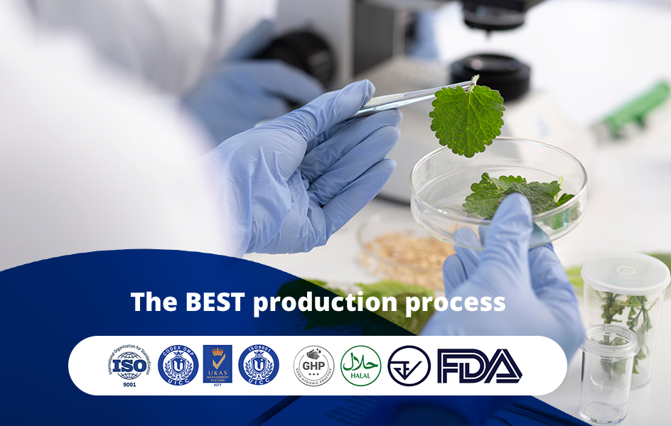 รวมถึงระบบการผลิตที่ได้รับมาตรฐานสากล ISO9001:2015, CODEX GHPs, FDA และ HALAL มีบริการ One-Stop Service ครบวงจร